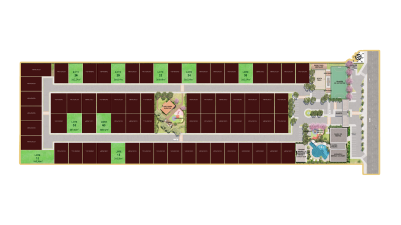 Os lotes variam entre 360m² e 565,96m², em um cenário onde o conforto encontra o melhor da vida ao ar livre.